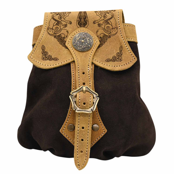Beau sac d'inspiration nordique, renforcé dans toute sa couture par une lanière en cuir. Il se ferme par une bande de cuir. Fabriqué en cuir véritable, et fabriqué selon les modèles de sacs de l'époque. Parfait pour les foires médiévales, de personnages, nordiques, vikings ou barbares. Ce sac élégant tout en étant rustique est le complément parfait à tout costume médiéval.