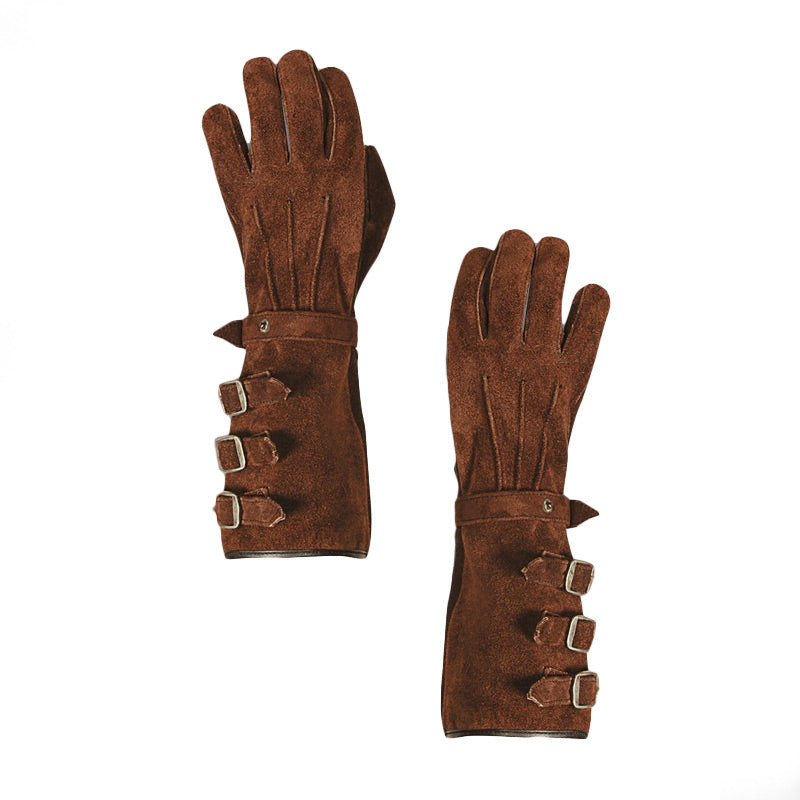Perfect for knights, mercenaries, guards, or adventurers seeking sturdy gloves for combat. Their refined suede finish also suits nobles, duelists, or performers who want a balance of protection and style.