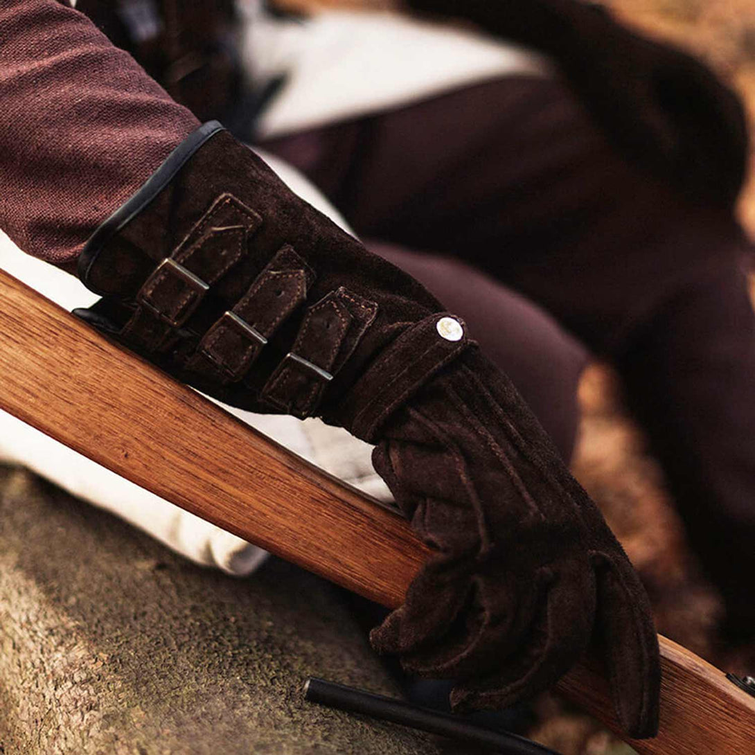 The Kandor Gloves are made of soft yet robust suede, perfect for wearing alone or under gauntlets. With adjustable wrist snaps and three cuff buckles, they provide comfort, durability, and a striking look for many LARP characters.