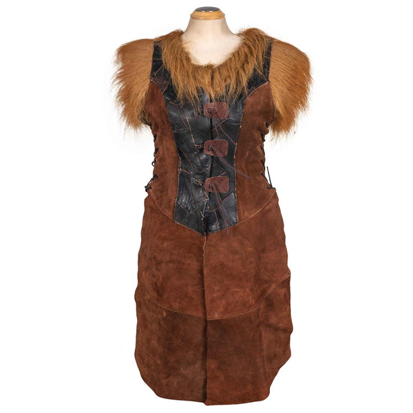 Le Raven Leather Jerkin est fait de cuir fendu de haute qualité, ainsi que de cuir patché de haute qualité et de fourrure synthétique sur le col et les épaules. Le système de fermeture est constitué d'un cordon en cuir, non seulement confortable mais également durable et réglable.