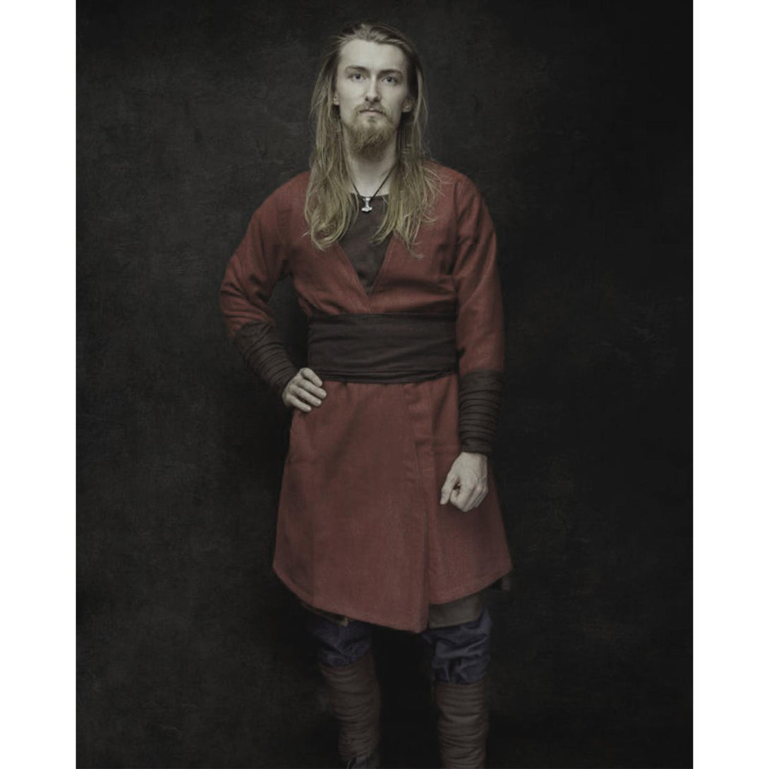 La tunique à double boutonnage "Shapur" est coupée de la même manière qu'un peignoir de bain moderne et était un vêtement populaire pour les hommes à partir du 7ème siècle. Il se ferme au moyen d'une ceinture textile ou cuir.