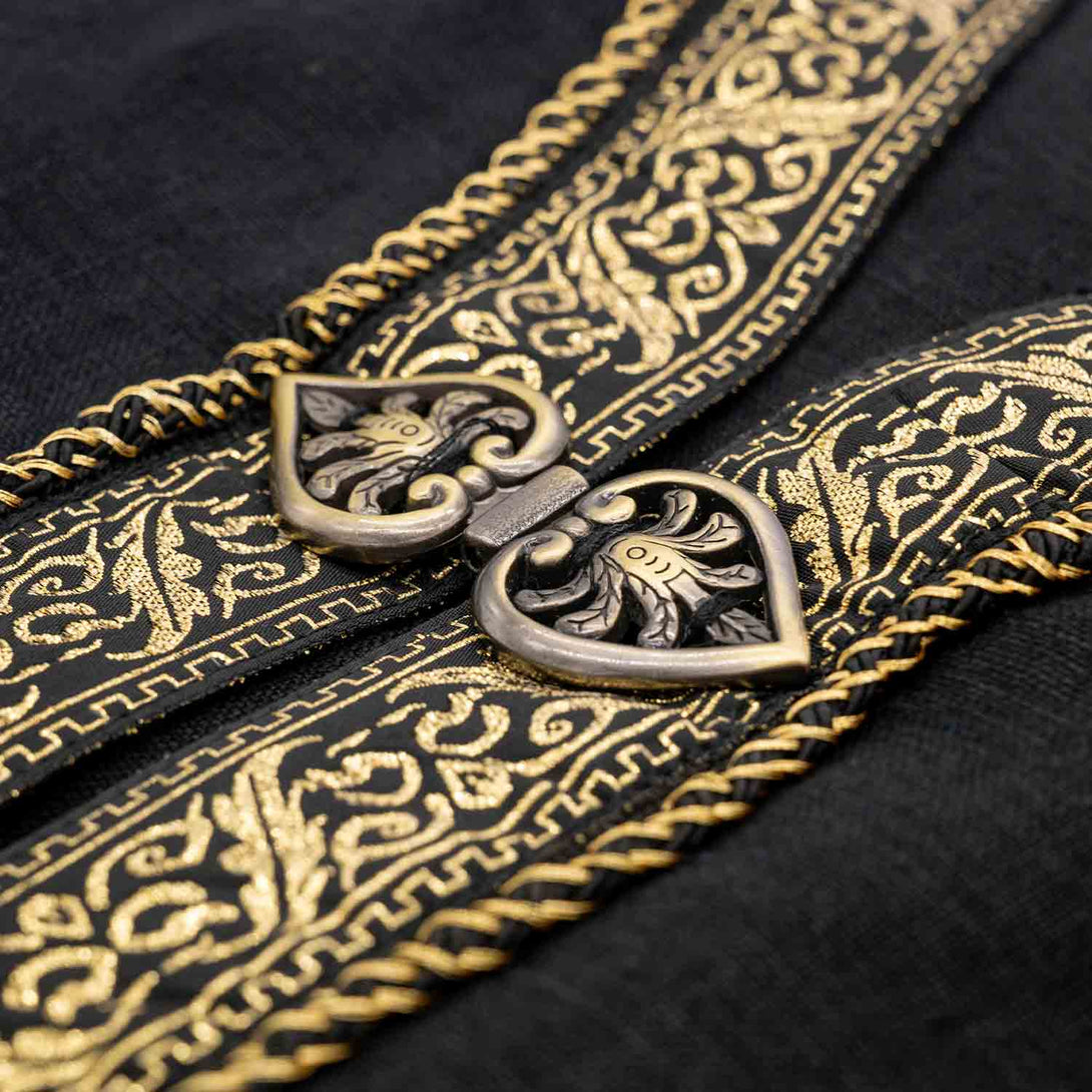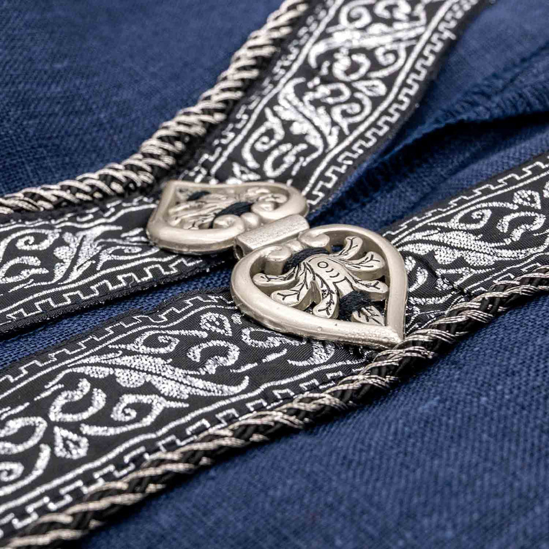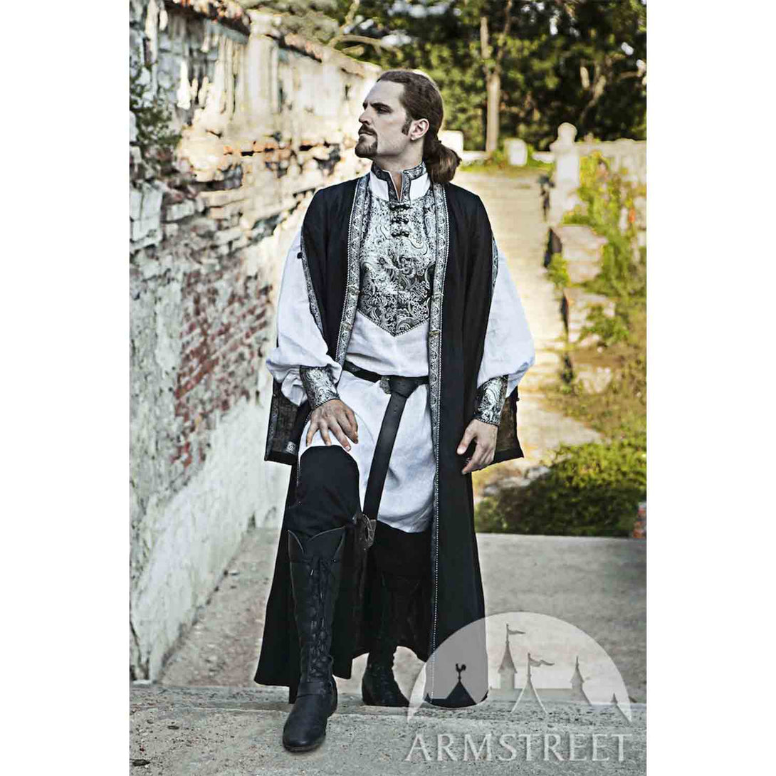 • Design: Eastern European medieval-inspired cut with silver/golden trim and decorative front clasps and sleeve buttons