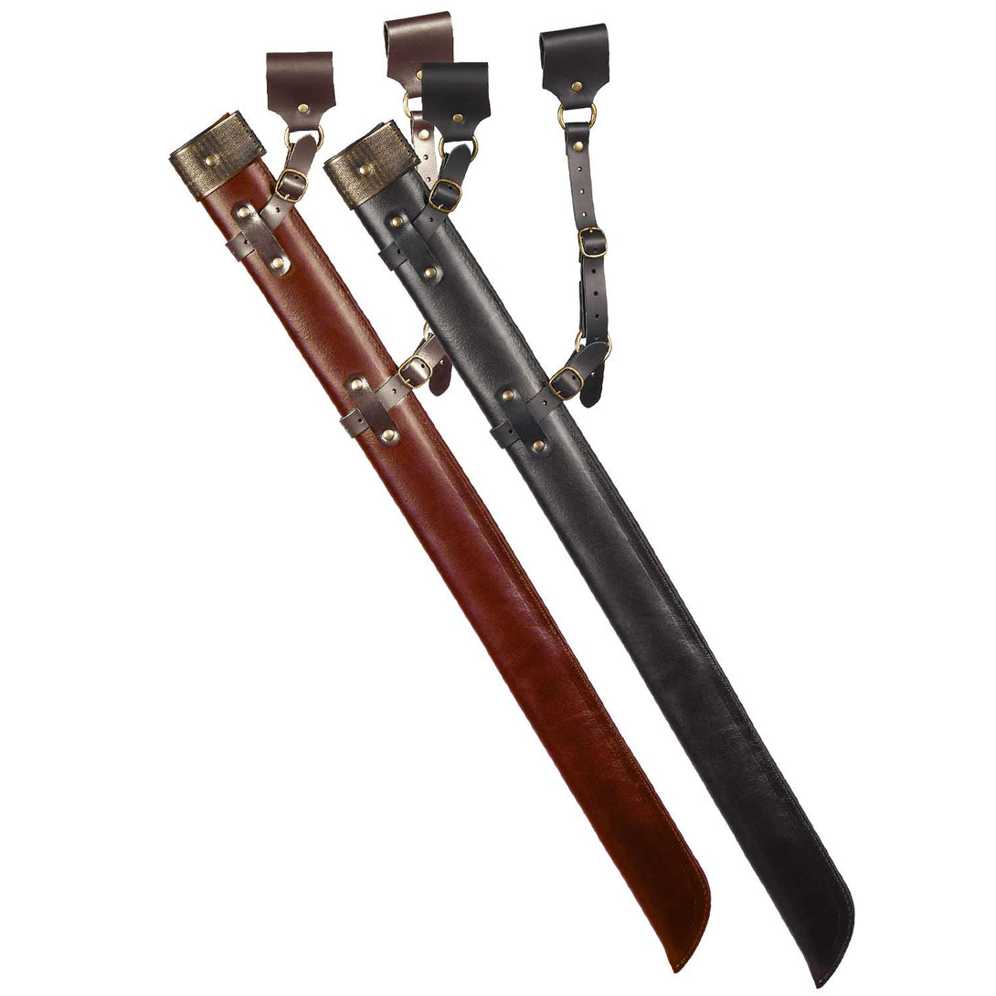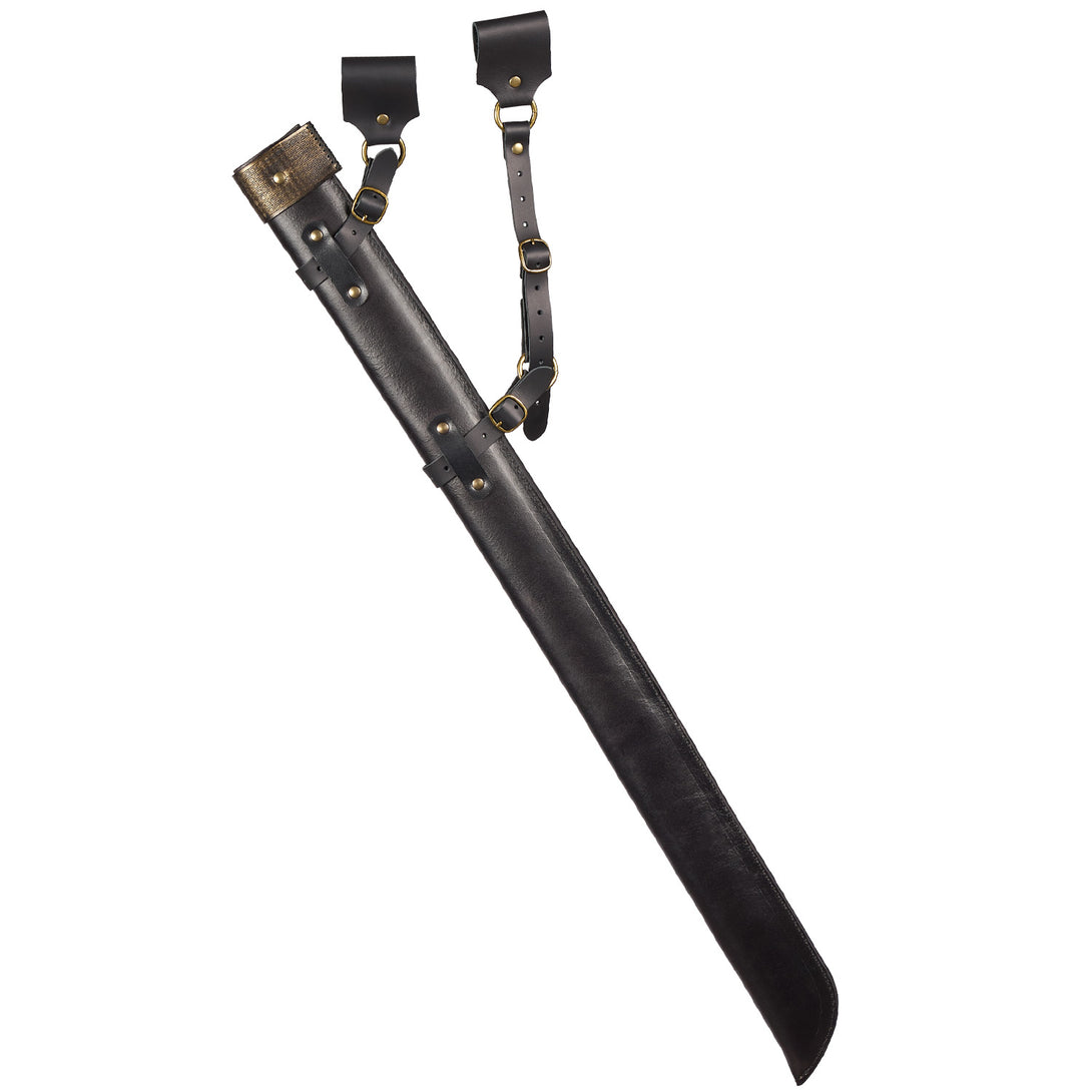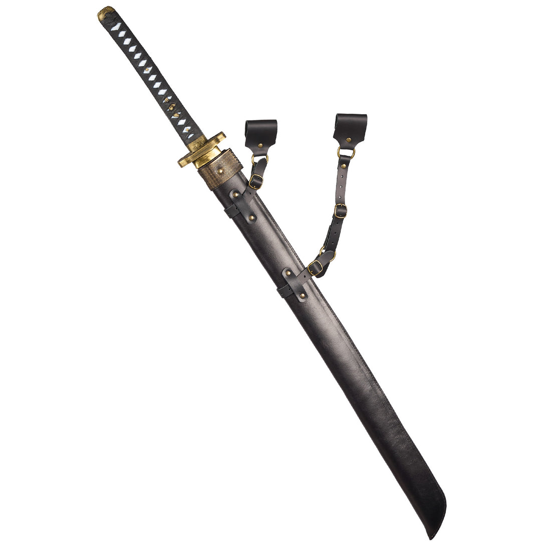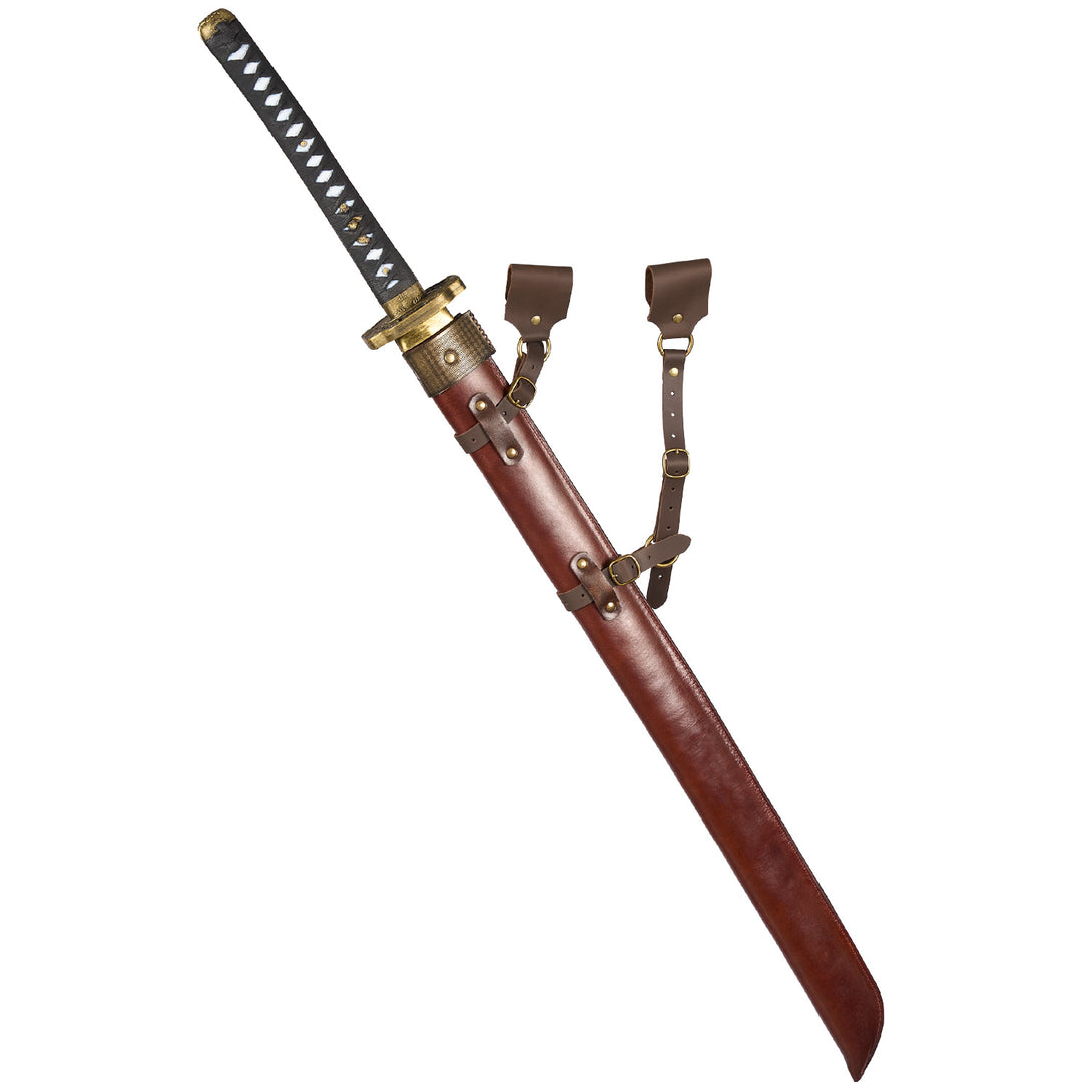 Made to fit Calimacil's Musashi Katana, this leather scabbard's straps can be adjusted to be worn on either side or removed completely for a more historical look.