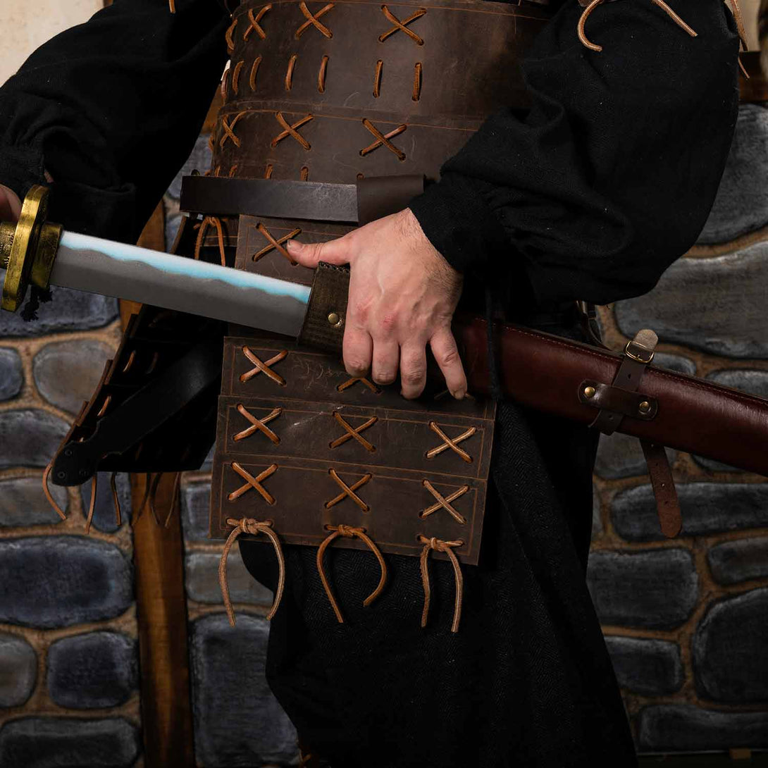 Crafted in the hands of Les Artisans d’Azure exclusively for Calimacil's Musashi Katana, this leather scabbard is the perfect companion for your Musashi katana. Whether you walk the path of the samurai, strike from the shadows like a ninja, or roam the wastelands as a lone rōnin, this accessory completes your look with both function and flair.