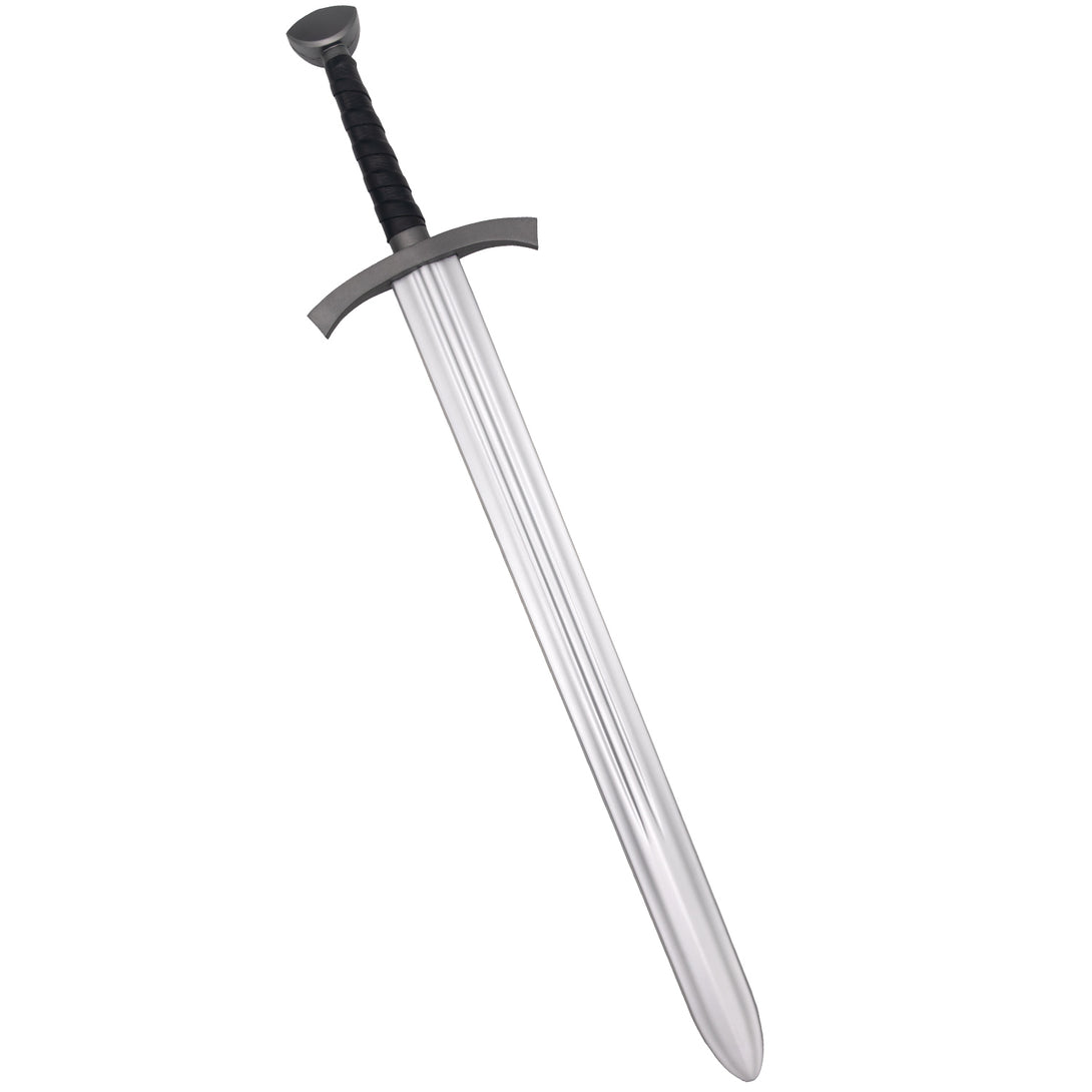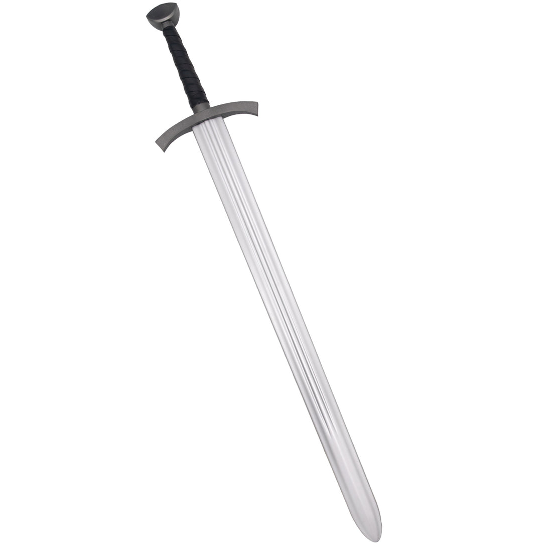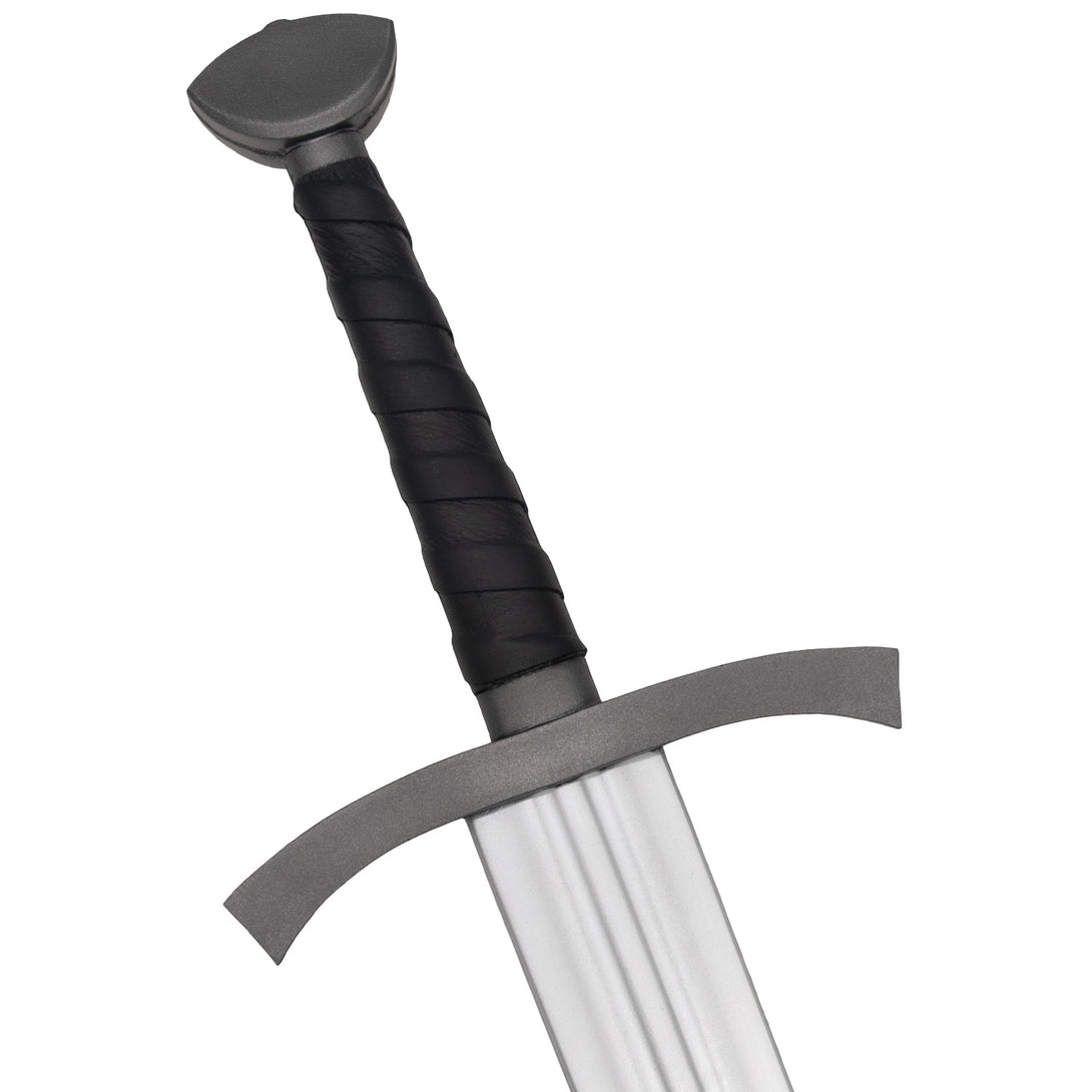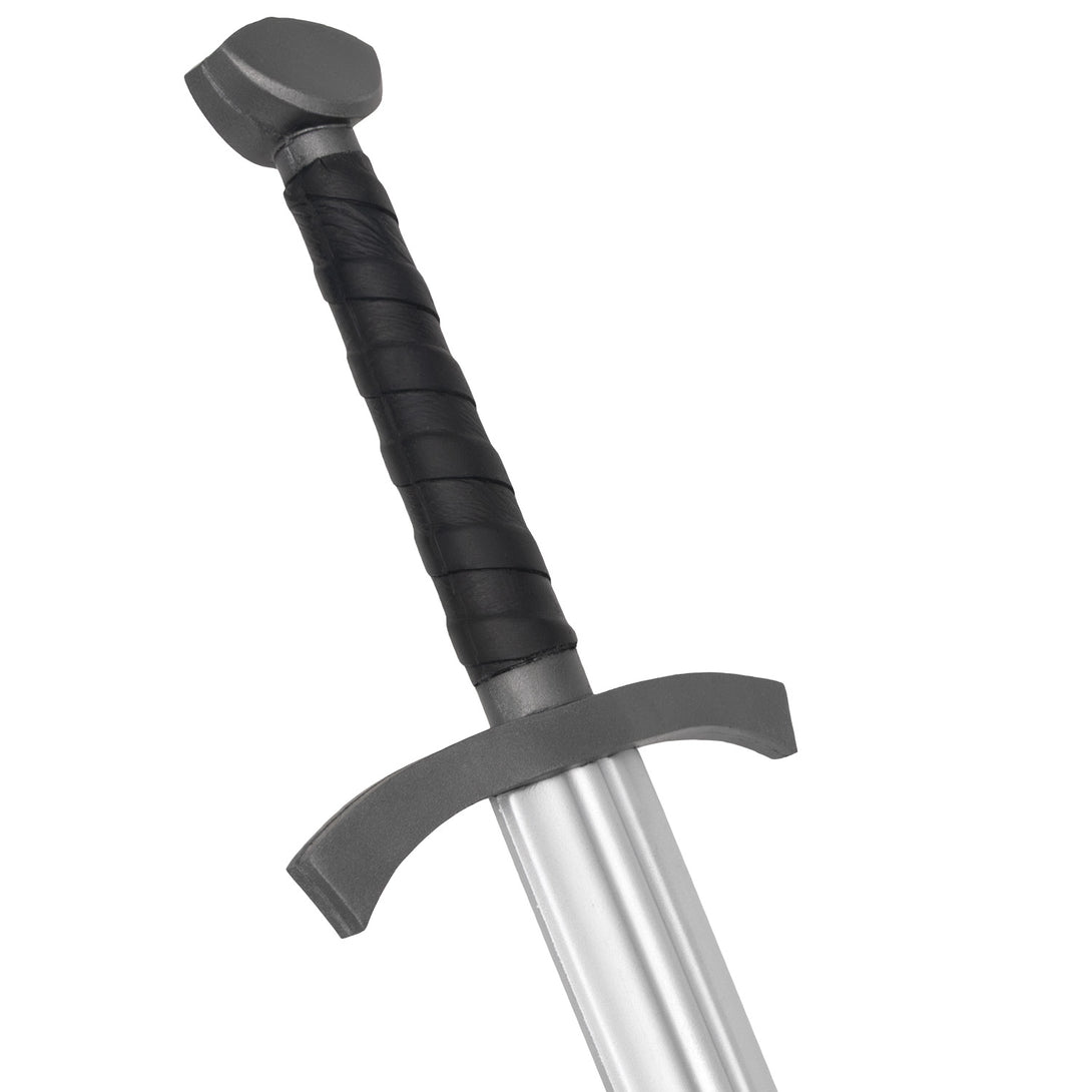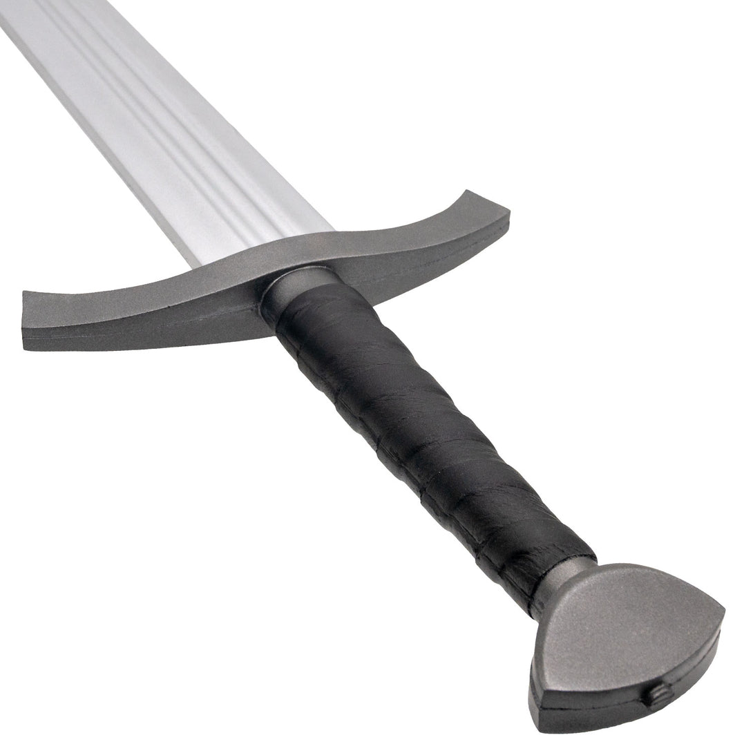 The Robbert Stark II LARP Sword is a striking addition to the Squire collection, combining durability with a classic medieval aesthetic. Featuring an upgraded handle with a simulated leather grip—similar to the Rob Sharp model—this sword offers enhanced comfort and control. Its thicker, safe blade edge is crafted from Calimacil’s renowned high-durability foam, ensuring reliable performance for years of intense LARP action. The steel-colored guard and black handle complement the silver blade, creating a realistic and visually impressive weapon ready for the battlefield.