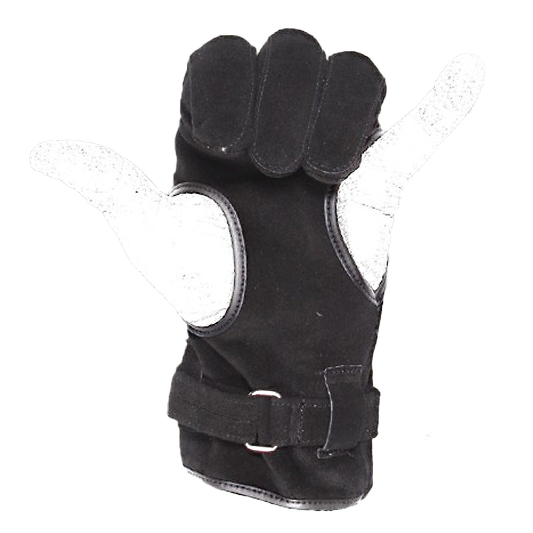 Crafted from durable suede, the glove fits snugly and secures with a strap around the wrist, keeping it firmly in place even during extended use. Smooth leather trim reinforces the thumb and pinky openings, ensuring both comfort and longevity.