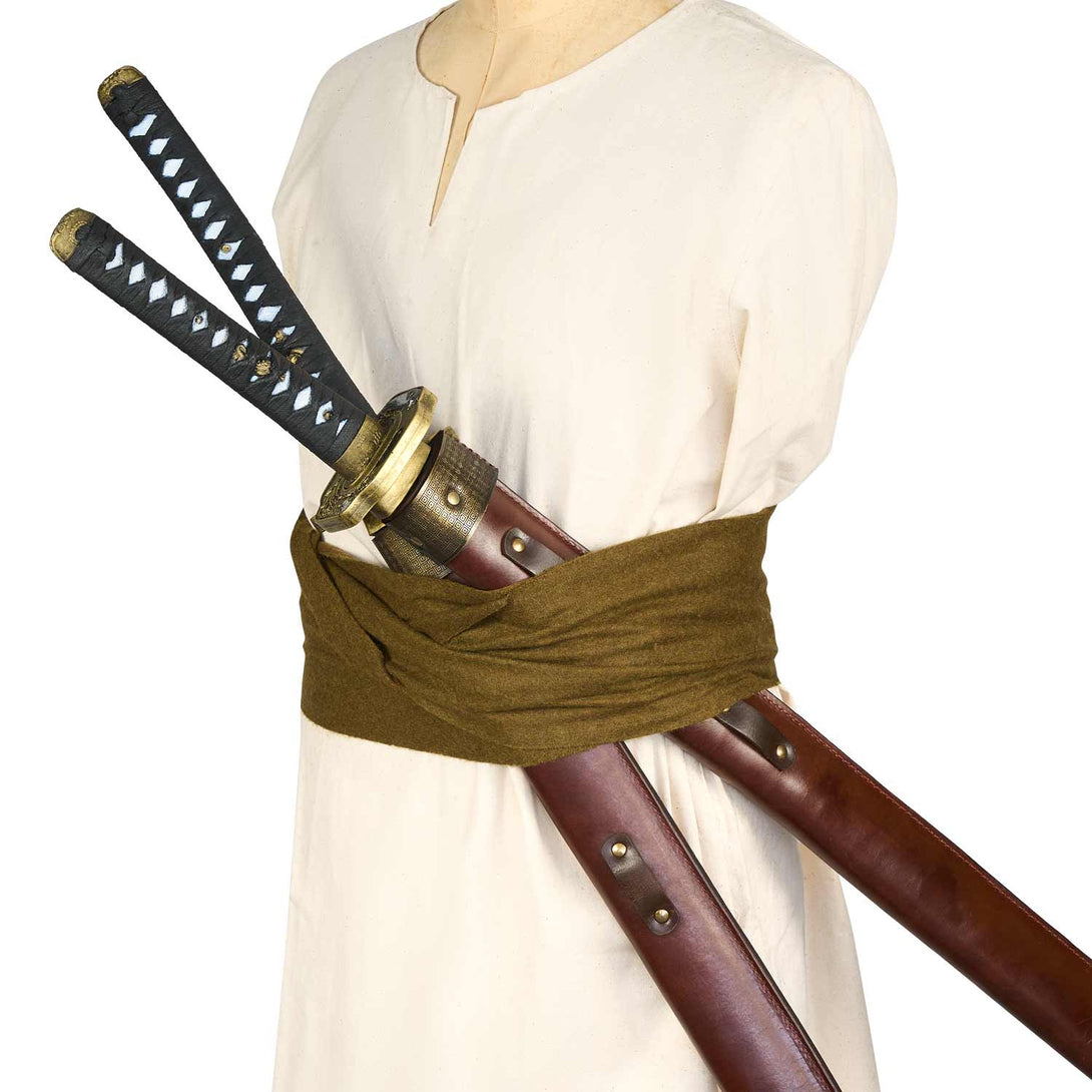 Tailored for the Calimacil Wakizashi Musashi, this finely crafted leather scabbard by Les Artisans d’Azure is your ideal sidearm companion. Whether you're a stealthy assassin or a rōnin on the run, this compact and versatile scabbard brings functionality and authenticity to your gear.
