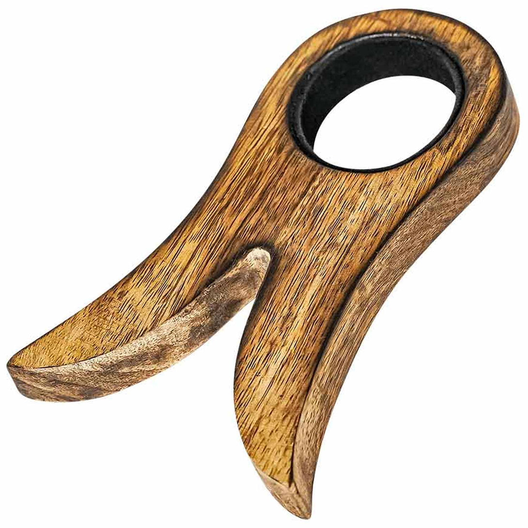 Display your drinking horn like a true warrior of the North. This handcrafted wooden Viking horn stand is built from durable hardwood and lined with soft suede for both stability and protection. Its split-fin tripod design cradles your medium-sized horn securely, making it perfect for use at LARP events, feasts, or as part of your home display.